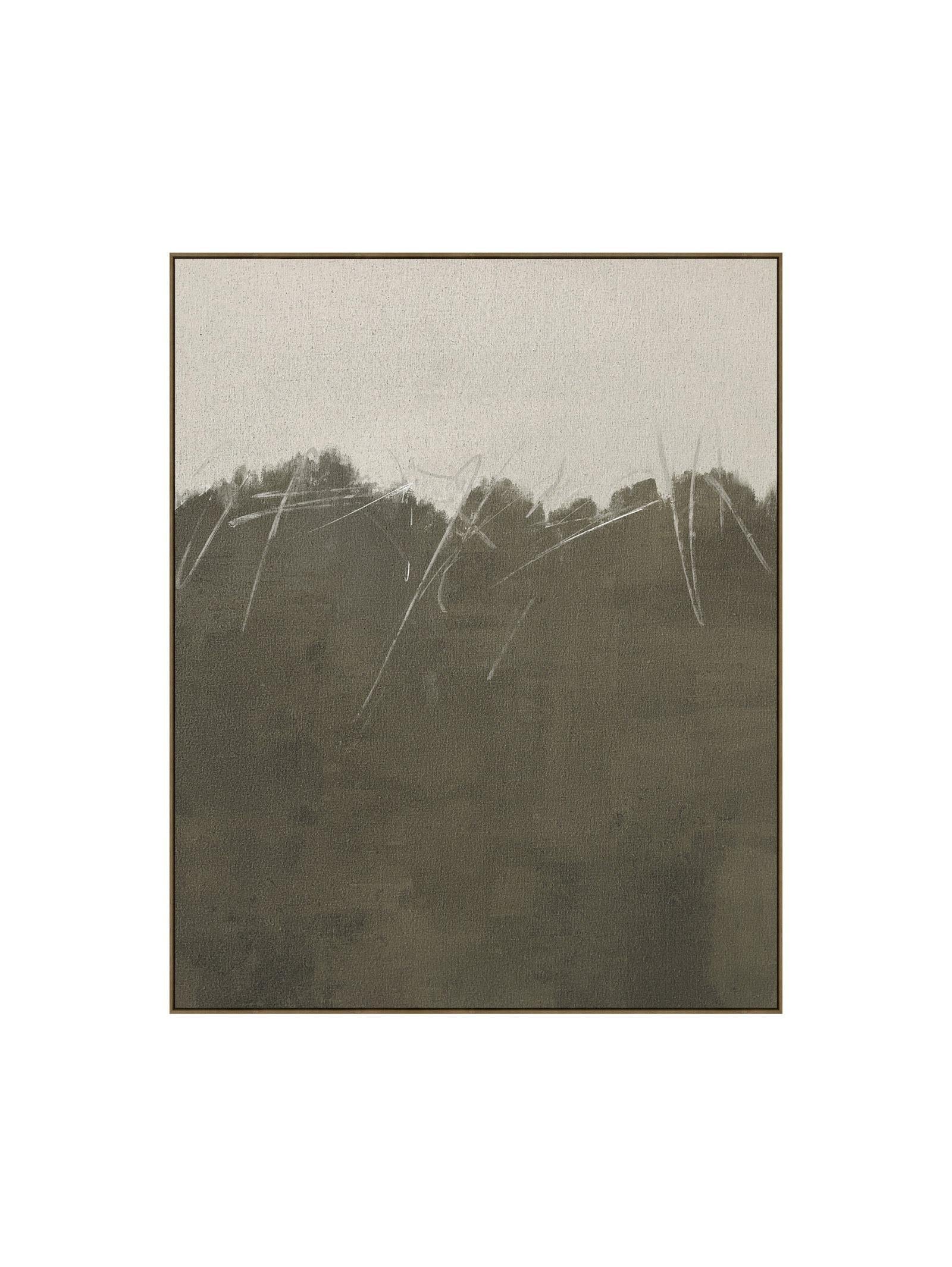 Linen Flax wall art, a commanding, extra-large abstract piece, is crafted on a linen canvas, offering a subtle yet sophisticated texture, while a sophisticated two-tone color palette and a hand-painted finish create an elegant focal point.