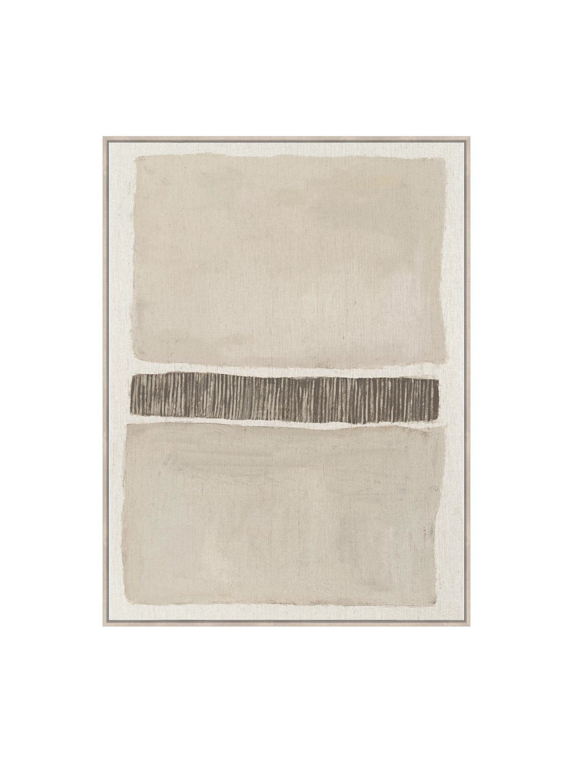 The Boardwalk wall art is rendered on a premium linen canvas that adds a subtle, organic texture to this abstract artwork. A serene palette of natural tones creates a calming and sophisticated feel.